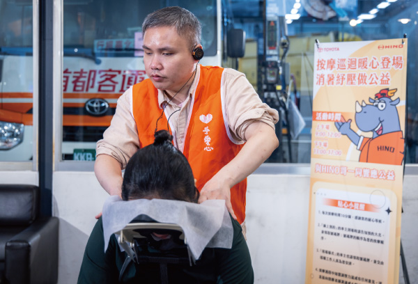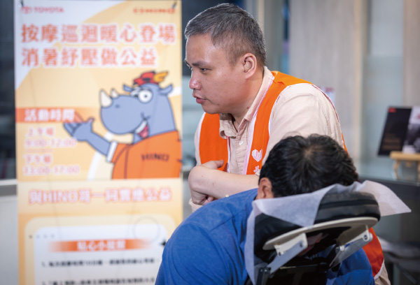 TOYOTA、HINO商用車台灣總代理和泰汽車今夏與手愛心視障生活關懷協會攜手合作,特別邀請專業視障按摩工作者至全台HINO服務據點為顧客提供公益巡迴按摩服務。