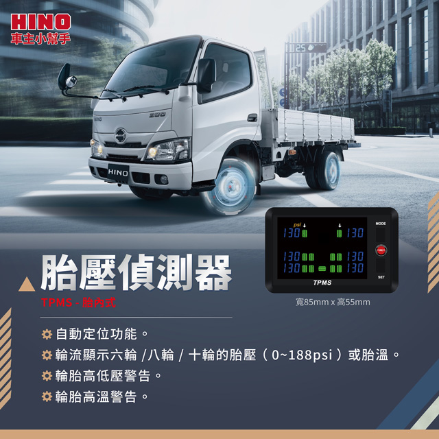使用TPMS(胎壓偵測器)可即時掌握胎壓、胎溫狀態