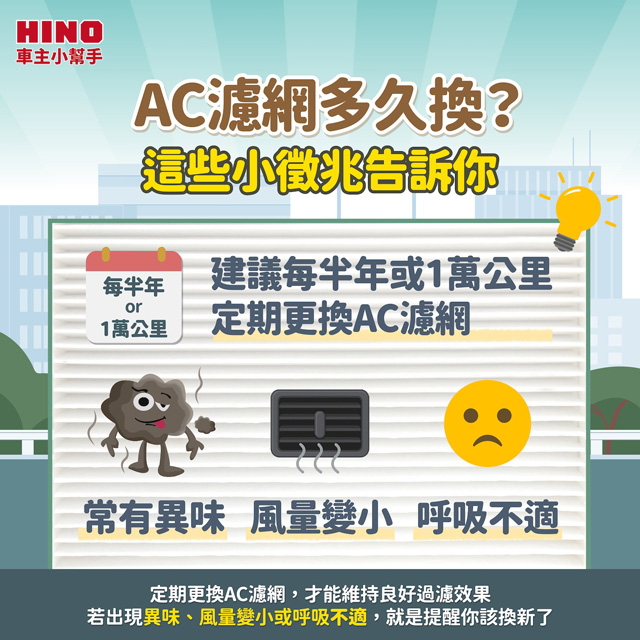 建議每半年或1萬公里定期更換AC濾網,才能維持良好過濾效果。