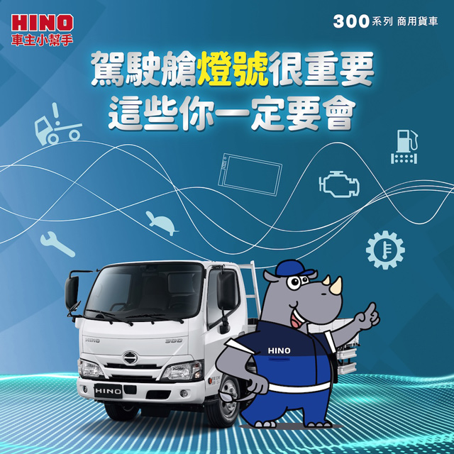 內容以 HINO 300 系列為主,部分符號可能與您的車款不同,請依實車為準。後續將陸續新增 500、700 系列內容。